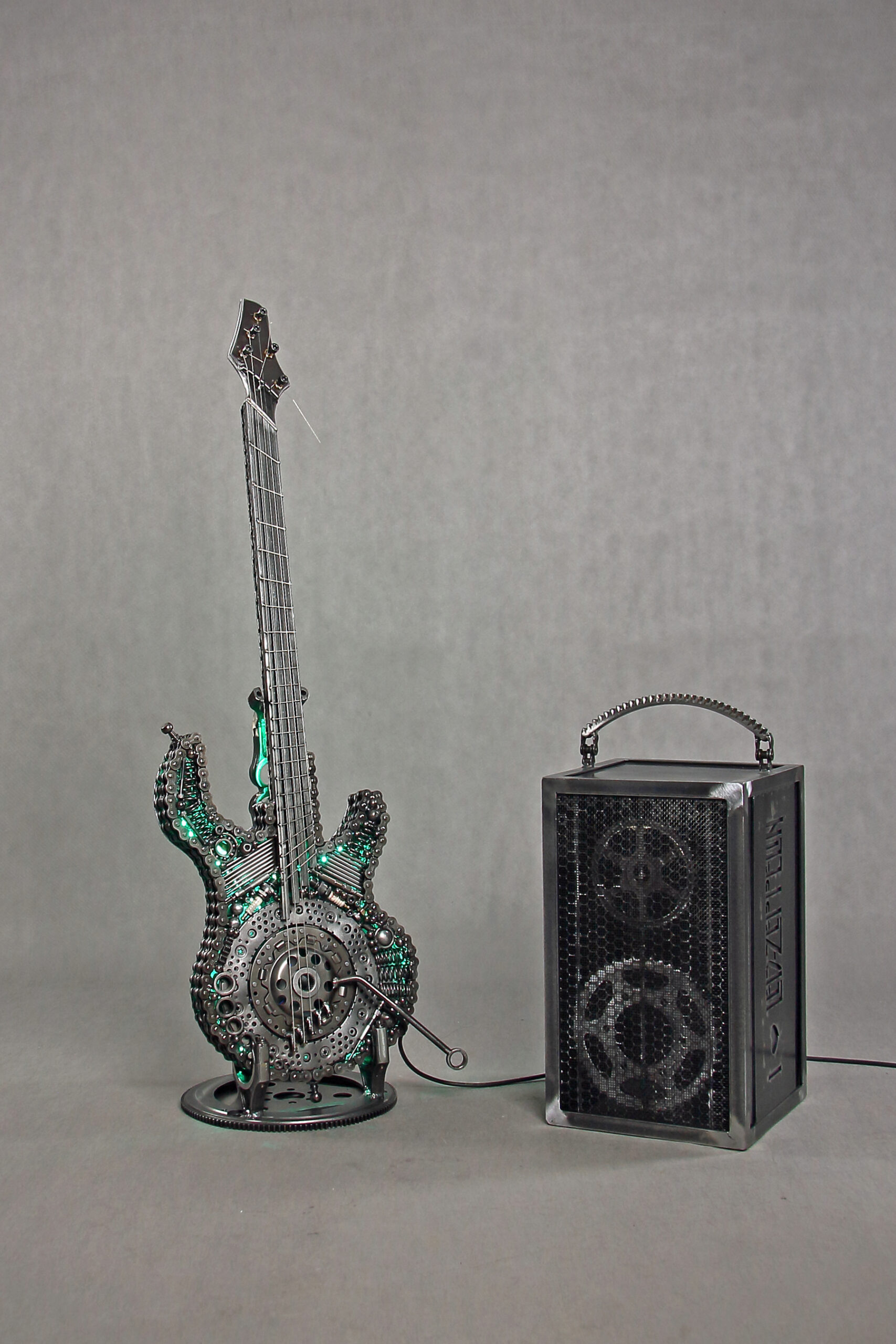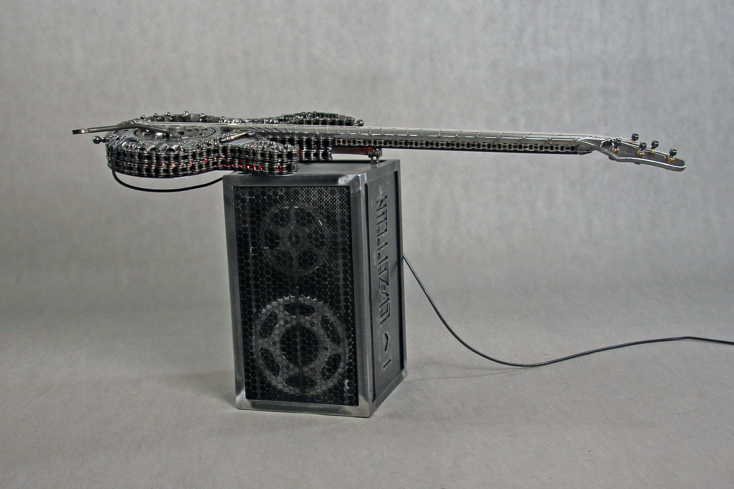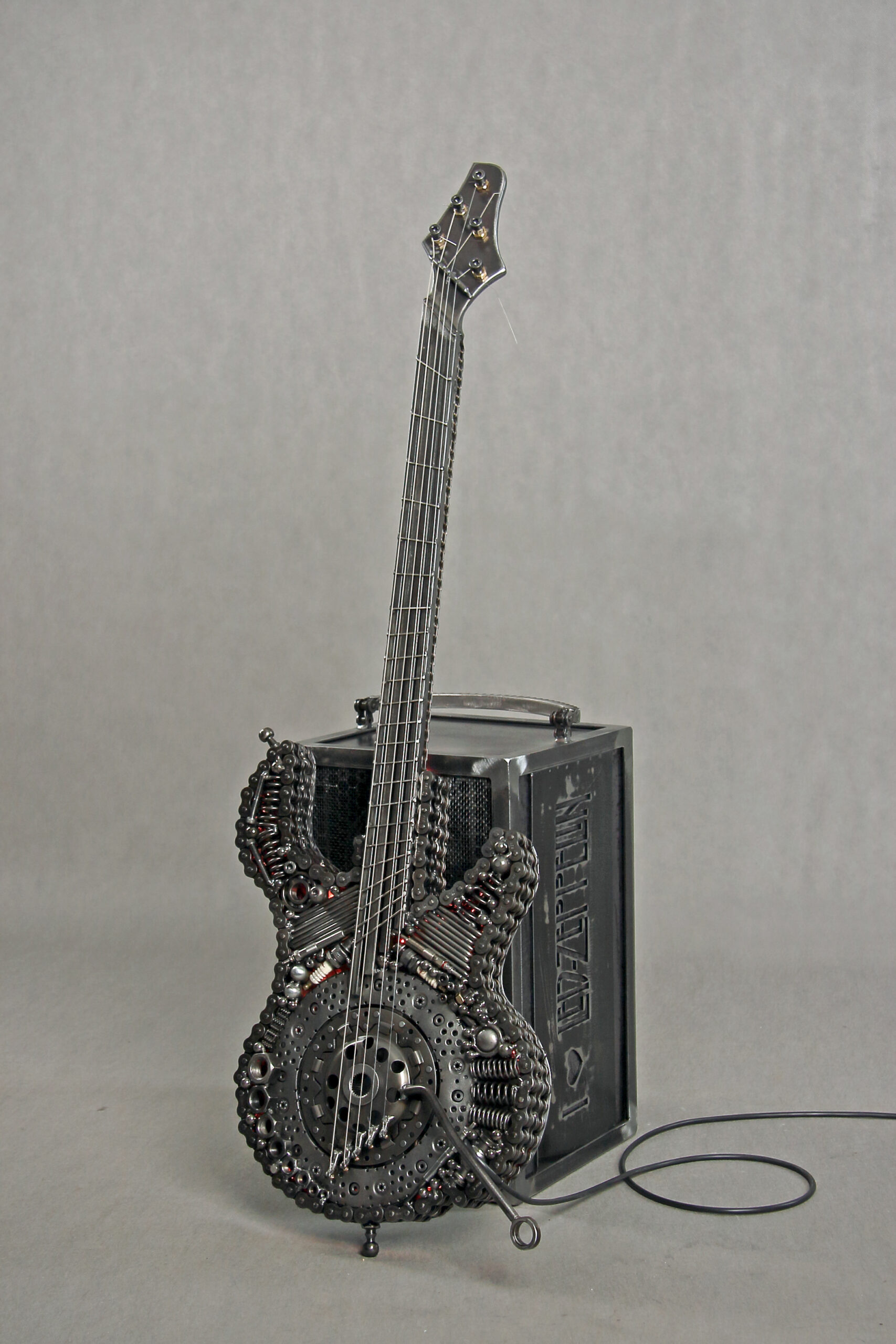 Dzieło to powstało w dużej mierze przez moje zamiłowanie do muzyki zespołu Led Zeppelin. Gitara i wzmacniacz są zrobione ze złomu, czyli elementów takich jak: sprzęgło samochodowe, świece żarowe, sprężyny, kulki łożyskowe, łańcuchy i o wiele więcej innych.